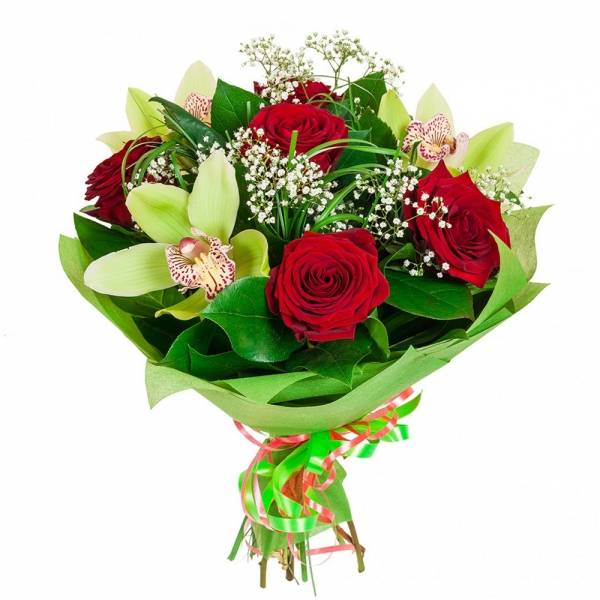 Букет с таким неординарным и забавным названием подойдет исключительно как подарок любимой женщине – в качестве извинения, приятного сюрприза или подарка на значимый праздник. Композицию букета составляют красные розы – символы любви и страсти, светлые орхидеи зеленоватого оттенка – знаки утонченной нежности и чувственности. Декоративная зелень придает букету дополнительный объем и завершает композицию, уравновешивая ее зелеными и белыми оттенками.